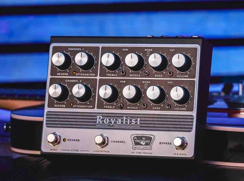 TONE KING ROYALIST MKII PRE TRI-TUBE PREAMP PEDAL - 3 X 12AX7 - ZERO WATT POWER AMP - PHASE INVERTER, IR, MIDI The Royalist MKII All-Tube Preamp pedal captures the unmistakable voice of the Royalist MKII amplifier, delivering classic British valve tones ranging from vintage ‘60s blues to roaring plexi-style overdrive in a compact, pedalboard-friendly format. It incorporates the exact preamp and phase inverter circuitry of the Royalist MKII amp, along with Tone King’s Ironman II Attenuation, allowing you to achieve rich, cranked-amp character at any volume. Powered by three high-voltage 12AX7 preamp tubes, it responds dynamically to your playing with exceptional touch sensitivity, harmonic complexity, and natural compression. The onboard, low-latency impulse response (IR) loader (per channel), Headphones output, seamless integration with your existing rig, and MIDI control ensure these iconic British tones translate effortlessly into modern setups, whether on stage, in the studio, or at home.