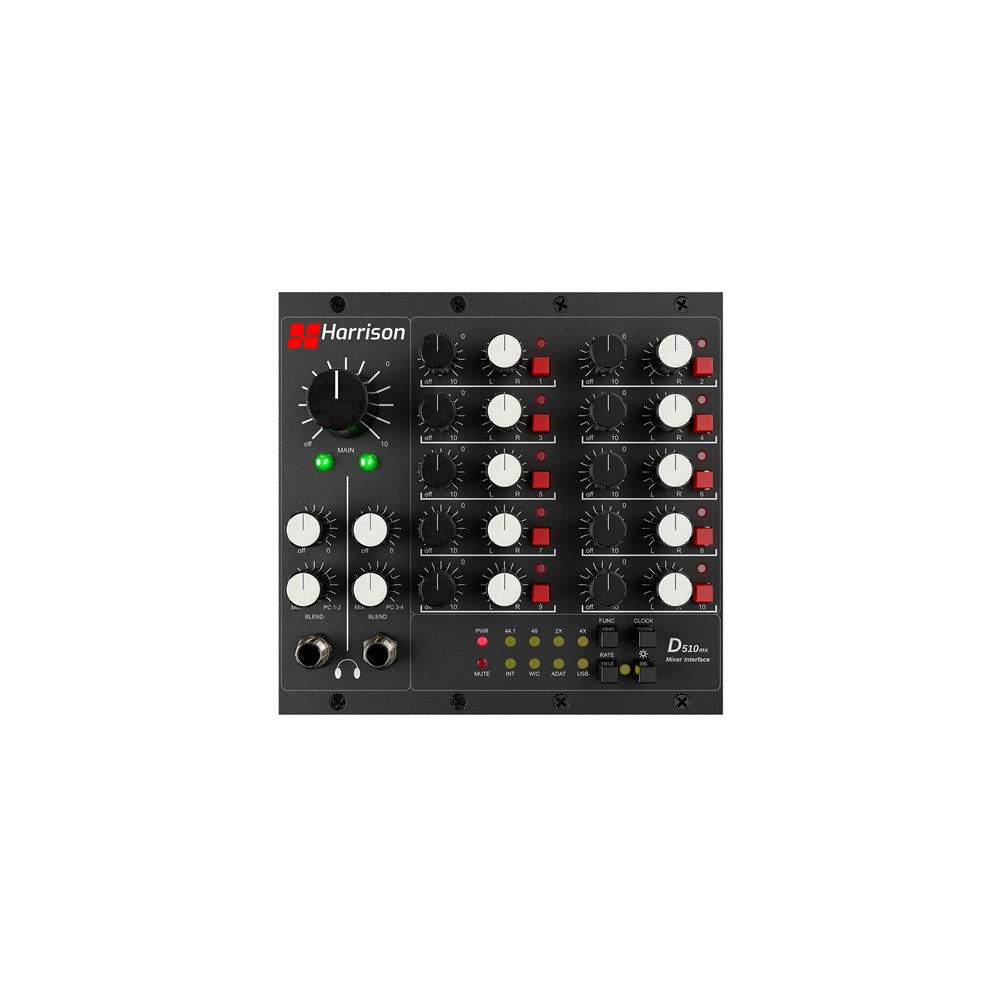 Build your custom 500 Series analog mixerPair the D510r with the optional D510mx mixer module to transform your system into a powerful 10x2 analog summing mixer. Designed to integrate into two slots of the Harrison D510r 500 Series rack, the D510mx gives you the flexibility to create stereo mixdowns from any of the eight remaining 500 Series module slots, alongside the two analog inputs to slots 9 and 10. With level and pan controls on each channel, plus dual independent headphone outputs with ‘blend,’ get the renowned weight and ‘3D’ depth that Harrison analog summing brings to productions while enhancing your headphone monitoring capabilities.