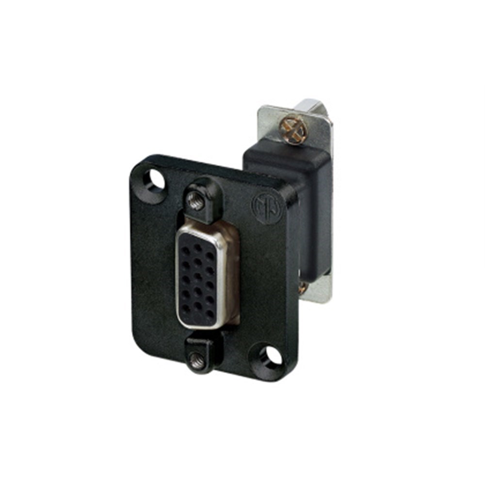 15 pole D-SUB feedthrough, female to female, black D-shape housing.