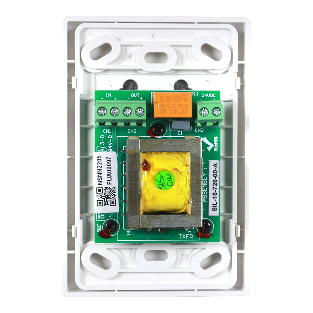 25W Speaker Volume Control with Evacuation Bypass Relay100 Volt line, 50 watt attenuator mounted on a HPM VIVO style wall plate.