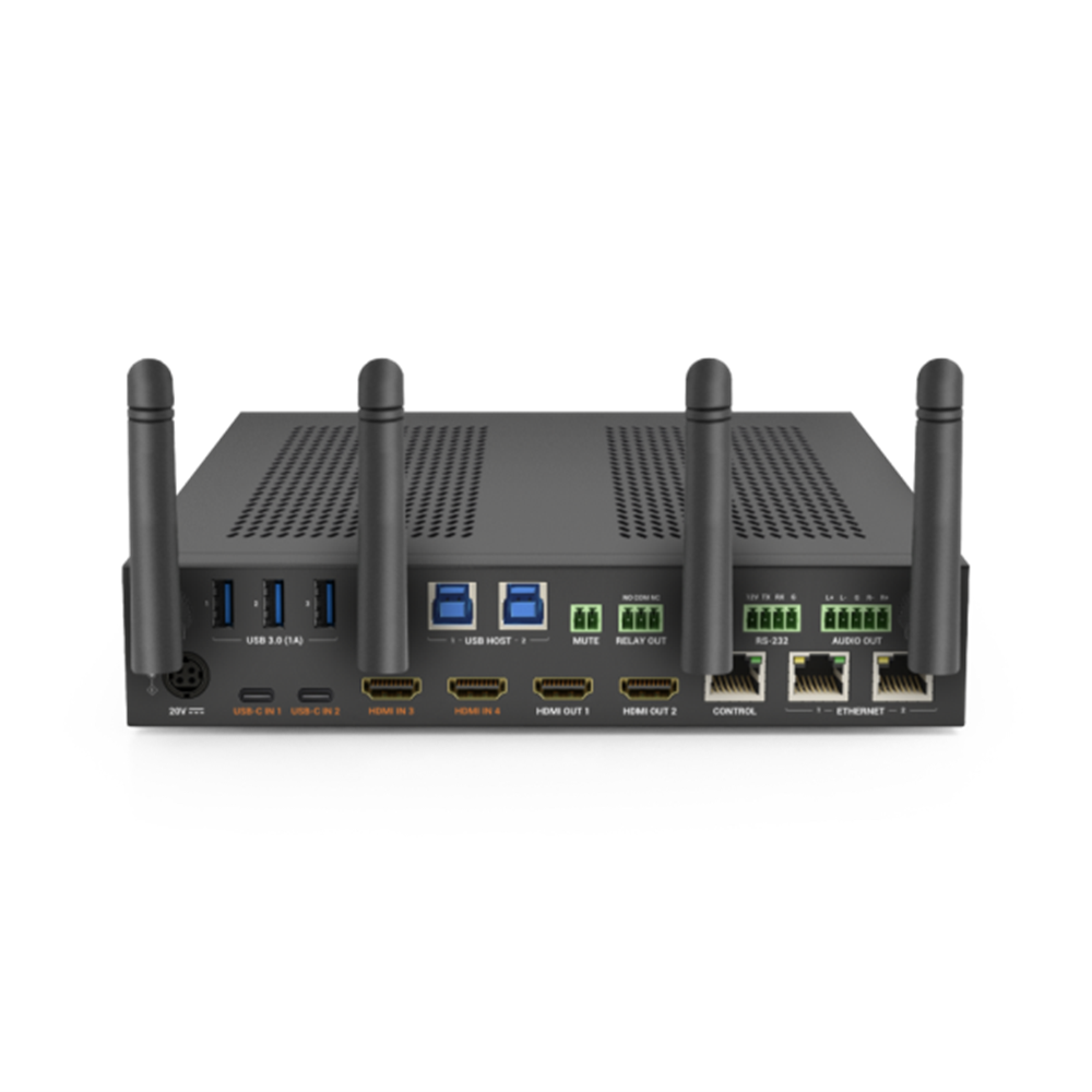 The SW-640L-TX-W is an advanced presentation switcher, tailored to meet the dynamic requirements of modern meeting spaces and conference rooms. This upgraded model boasts significant enhancements. Key improvements include two USB-C inputs with 60W PD and MST support for receiving dual video signals. The switcher now features an upgraded USB 3.0 switcher, further enriched by the support for a wireless host through the APO-DG2. This addition allows for more flexible and convenient connections.