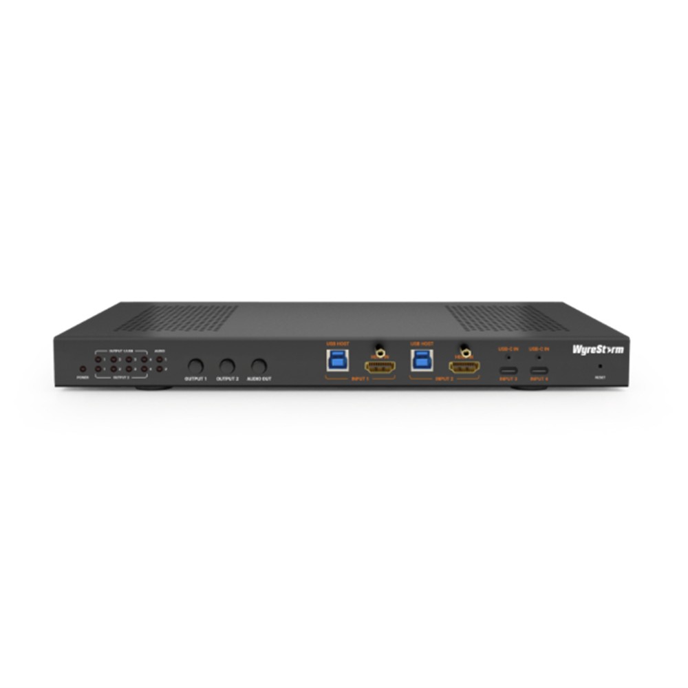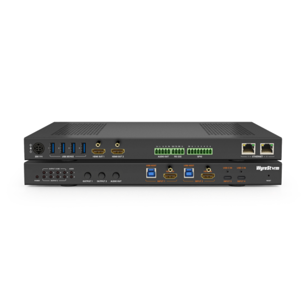 The MX-0402-MST Conference Presentation Switcher is the ultimate solution for modern conference rooms. Designed to simplify and enhance your presentation experience, this 4×2 switcher integrates video, audio, USB, control, and Ethernet functionalities. With dual USB-C and dual HDMI inputs, automatic switching capabilities, and advanced USB 3.2 ports, the MX-0402-MST ensures seamless connectivity and control for all your conference needs. Experience crystal-clear 4K video, high-speed data transfer, and efficient power delivery with this state-of-the-art presentation switcher.COMPREHENSIVE INPUT OPTIONSThe MX-0402-MST Conference Presentation Switcher features dual USB-C and dual HDMI inputs, allowing for versatile connectivity. Each input port supports cable lock connections, ensuring secure and stable connections for your presentation devices.