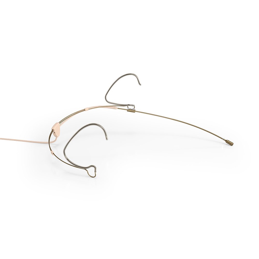 The headset has its cable guide directly at the back of the headset frame, so that you can easily organize the cables to run unobtrusively down the back of the performers. The cable guide slides from side to side, so it can be moved out of, for example, the camera view. The special construction also separates the cables from the boom movement, which ensures that cables are not pulled on when the boom is moved. This helps ensure a longer life to the mic cables.The cable is often the weak spot on these types of mics, but we have opted to use the same size cable (Ø 1.6 mm (.06 in)) as on our 5 mm (0.20 in) mics. They are extremely rugged, do not become entangled and are equipped with an inner core made of Kevlar that withstands rough pulls. The cable, capsule and boom design, ensure immunity to noisy wireless devices. Headsets are typically connected to a wireless belt pack and we offer a comprehensive mix of adapters to suit the many wireless transmitters available. When used with an adapter, the connector is our MicroDot but we also offer hardwired terminations to suit the most popular systems from manufacturers such as Shure and Sennheiser. All of our connectors are equipped with a rugged strain relief.