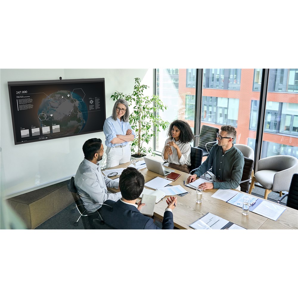 Enhanced Audio-Visual ExperienceThe integrated 8-microphone array with automatic gain control and echo canceling technology ensures a crisp clear voice transmission from anywhere in the room. Embedded powerful 2.1 channel speaker system, including 2 × 20W and 1 × 15W subwoofer, make for crystal clear audio quality. Optically bonded 4K display gives you an ultra-wide 178° viewing angle. No matter where you sit, the image is robust and clear.