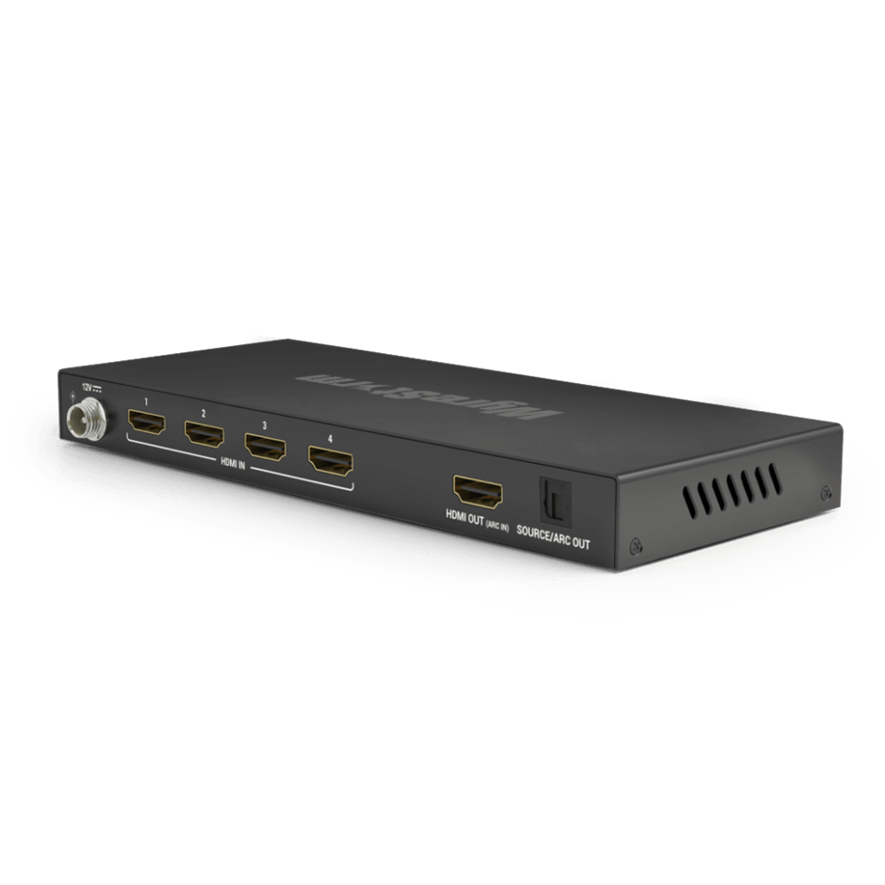 Ranging in two models with varying number of inputs to choose from, this powerful switcher series also gives you the tools to de-embed audio from your source if there isn’t an option on the source and supports ARC from your display to send to send high quality 5.1 to your audio distribution system. Other features such as auto switching and CEC passthrough makes this WyreStorm Essentials™ switcher series a true and powerful plug-and-play solution.