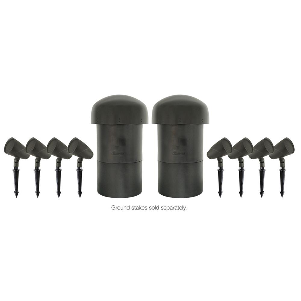 Sonance Landscape Series LS4T SAT systems configured for 70V settings allow for greater area coverage with a discreet footprint. These 4" speakers produce outstanding detail at any volume with smooth bass. As the in-ground subwoofer (12") emanates throughout the space, it supports the system's low frequencies creating a perfect balance of detail and punch. Each system includes a Sonamp DSP 2-750 MKII 70V amplifier with custom DSP settings to optimize the system for any outdoor space.