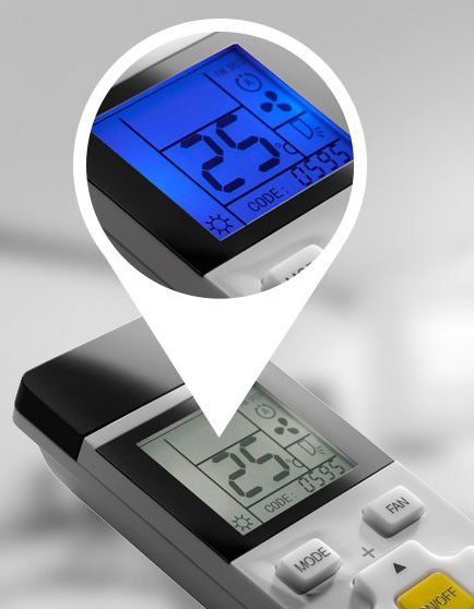 Modern design with a backlit LCD screen, the One For All Aircon remote is compatible with the most popular air conditioner brands.