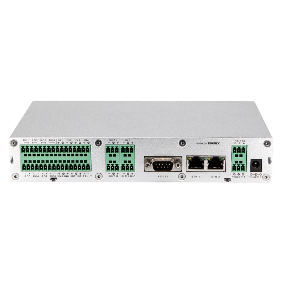 Professional Intercom / Paging device with supervised contact closures and relay outputs, 48V capableProfessional IP Paging and Intercom codec device for security applications. Balanced Audio interfaces, contact closure input supervision, output relays, redundant power and network connections, switchable microphone input.