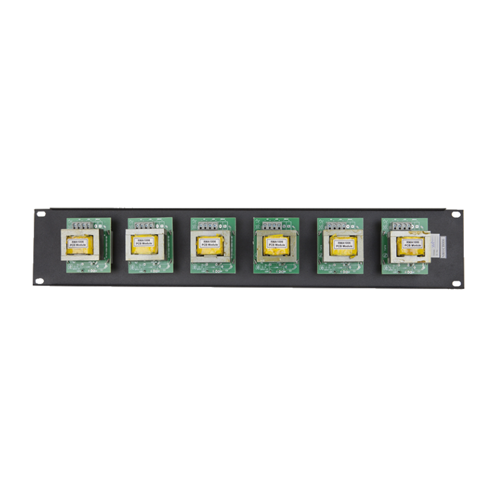 100 Volt line, 6 x 100 watt attenuator mounted on a 2RU Rack Panel.