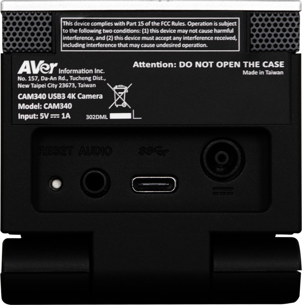 *ePTZ and 4X zoom are not available in 4K or 60fpsFreedom to Collaborate AnywhereThe CAM340+ is a completely portable solution for ultimate video conferencing convenience. With a versatile monitor mount, easy-to-carry size, and durable construction, the CAM340+ gives users the flexibility to make any room a huddle room.Reliable Video and Outstanding QualityAVer's quality manufacturing process ensures that the CAM340+ is always ready for use. Designed for durability, the CAM340+ camera is built to be durable and reliable. With AVer’s industry leading 3+2 years warranty program, we make sure that AVer is always there with the support you deserve.