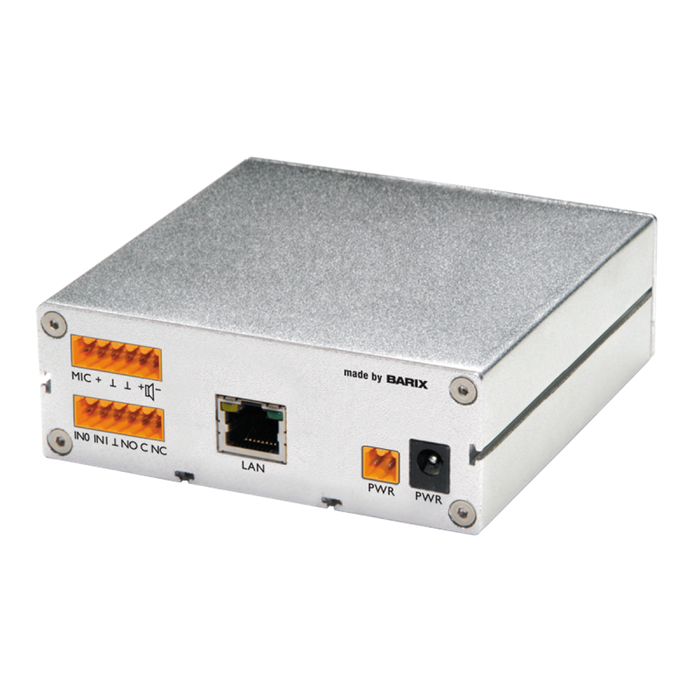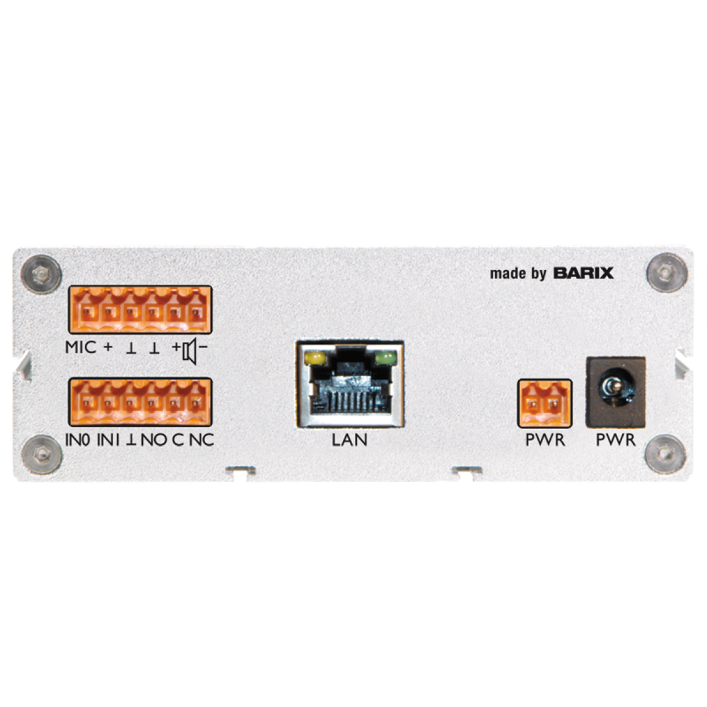• VHF Radio Controller and interface to IP• Microphone Encoder for IP Audio Surveillance• Door Intercom Controller, VoIP based• Help Point/SOS call box device• Classroom VoIP device with built-in amplifier, talkback, serial port• Paging and Audio Distribution with Amplifier control and monitoring• Generic, bidirectional full-duplex VoIP module for Paging and Intercom Applications• Live IP Audio Encoder for Streaming Applications• Digital Annunciator, Message Player, Message Repeater• SIP and IP Paging Zone DeviceFEATURES• MP3, G.711, G.722*, PCM Encoding• MP3, G.711, G.722*, PCM Decoding• Shoutcast/Icecast Source capability• Audio Level Supervision with SNMP Trap generation• IP Streaming via TCP, UDP, RTP, Multicast• Microphone Input• Line Level Input• Line Level Output• Amplified Output 2W (8Ohm)• Relay Output (1)• Contact Closure Input (2)• RS-232 Serial Port (1)• RS-485 Serial Port (1)• Supply Voltage (16..30VDC or 48VDC)• Designed in Switzerland and installed in tens of thousands of locations worldwide, the Barix Audio Devices are the established standard for VOIP and Audio over IP applications alike.