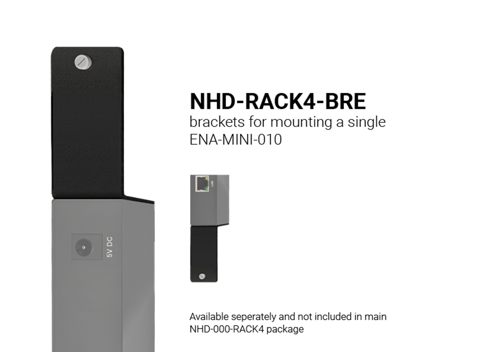 The NHD-RACK4-BLK accessory includes the brackets and screws for blanking a single NHD-000-RACK4 slot.