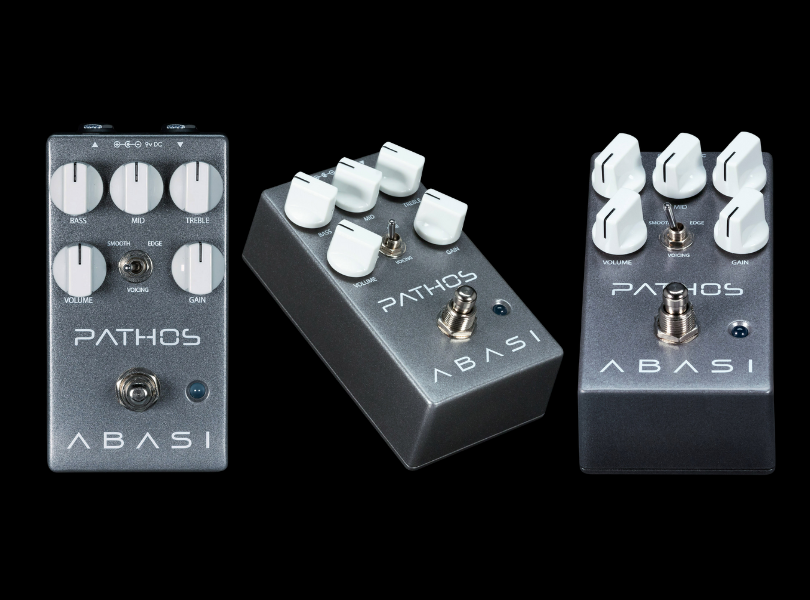The Abasi Pathos distortion pedal presents an impassioned appeal to the varied sonic needs of the modern guitarist. Designed to retain the feel of an American-style tube amp channel, its versatility is derived from the “smooth” and “edge” voicings that range from an emotive crunch all the way to scorching, yet controlled distortion and sustain. The two voicings can be sculpted with a set of musically-tuned EQ shelves and mid control, as well as potent gain and level controls. It is these precision tools that allow Pathos to encompass the functionality of several dirt boxes in one – be it a push to a driven amp, a full-on distortion channel in front of a clean amp, or a boost in front of a digital modeler. Crafted in the USA by Tosin Abasi in conjunction with Brian Wampler, Pathos is the choice for any discerning guitarist seeking an array of distortion flavors to emote their musical story.