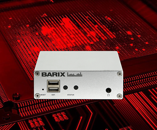 Audio Over IP BARIX is a skills-based company offering expertise in leading-edge, IP-based communications and control technology. Based in Dubendorf Switzerland, BARIX is a leader in audio over IP hardware solutions and intelligent network audio applications. BARIX’s line up includes: Audio to mobile phones: Send live sound to phones, tablets, computers or any other receiver device with BARIX's low latency and high compatibility audio streaming. Background music: manage your multi-location in-store background music with one cost-effective, sturdy and highly scalable solution. Each set-up comes equipped with a cloud-based portal server that provides configuration as well as firmware update and management across each location.
