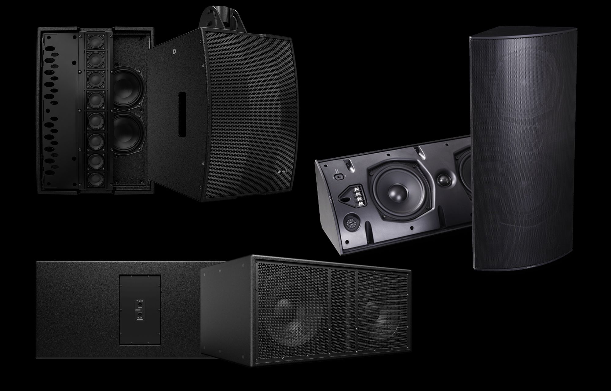 LOUDSPEAKERS CI series | CBL series | CCA series Blaze by Sonance offers three loudspeaker series designed to deliver outstanding sound quality, seamless integration, and wide application flexibility. The Ci Series provides discreet, design-friendly speakers with 100° x 100° coverage, outdoor-ready durability, and innovative triangular cabinets that mount cleanly into corners or combine into 180°/270° arrays—ideal for stylish indoor and outdoor commercial spaces. The CBL Series, designed by Hugh Sarvis, delivers precise constant-beamwidth control, ultra-low distortion, and natural clarity, supported by the powerful BL18S subwoofer for installations where accurate, consistent coverage is key. For larger distributed systems and medium-sized venues, the CCA Series offers scalable, high-output performance through the CCA10i constant-curvature speaker and its companion subwoofers, all engineered using advanced acoustic scanning for reliable real-world results.