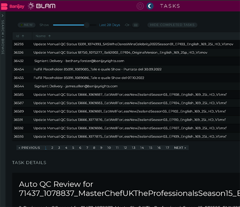 Feature Rich Tools Powerful Google style search Based on an open and extensible schema enabling frame level precision Controlled vocabularies and intellisense metadata management Secure global user access control for organisation, group or role based permissions, supported by Active Directory integration Built-in workflow management for creation and monitoring of custom workflows for manual or automated tasks Web browser based interface for global access to the media management and plug-in tools on any platform. All production workflow management operations can be controlled through the customisable user interface - from baseband and file ingest, content reformatting and metadata management to publishing and distribution Off-the-shelf plug-ins are available to build on the core BLAM features. The plug-ins provide features such as linear ingest, integration with the Avid video editing toolset as well as lossless file processing techniques.
