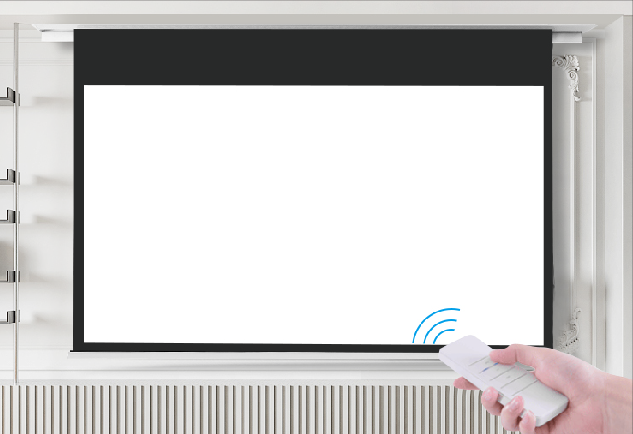 Accessories: Tailor your projector and screen set up with Grandview Screens' portfolio of accessories, including remotes, RF wireless triggers, switches and installation brackets. Wireless control options Wired control options Other accessories Fabrics: Grandview has designed and developed their own custom range of white, black, transparent and grey fabrics that can be fitted to every screen type in their portfolio. All materials are mildew resistant and robust enough to withstand bowing and curling. All fabrics are certified and recognised by Image Science Foundation for superb performance.