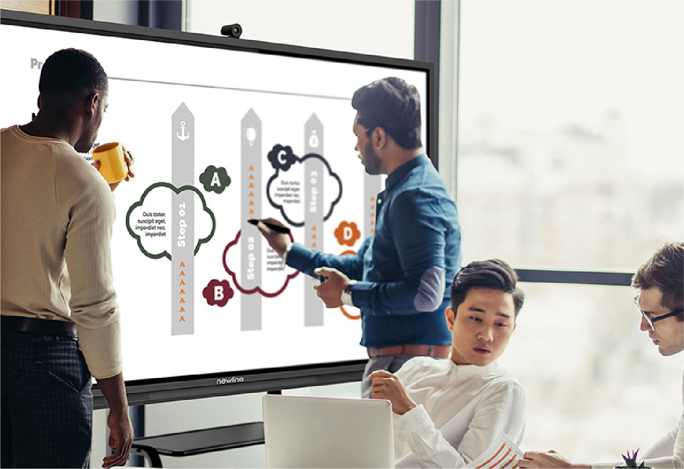 INTERACTIVE TOUCHSCREENS AND COLLABORATION DEVICES As one of the world's leaders in interactive touchscreen and unified communications/collaboration devices, Newline Interactive is dedicated to creating solutions that are innovative and easy to use. Their display products are found in almost any style of collaborative environment around the world, such as boardrooms, huddle rooms and classrooms. Newline Interactive’s products bring together: Unique hardware technologies Software applications that are developed in-house Industry-standard interfaces and connectivity Support for the world’s leading communications and collaboration applications