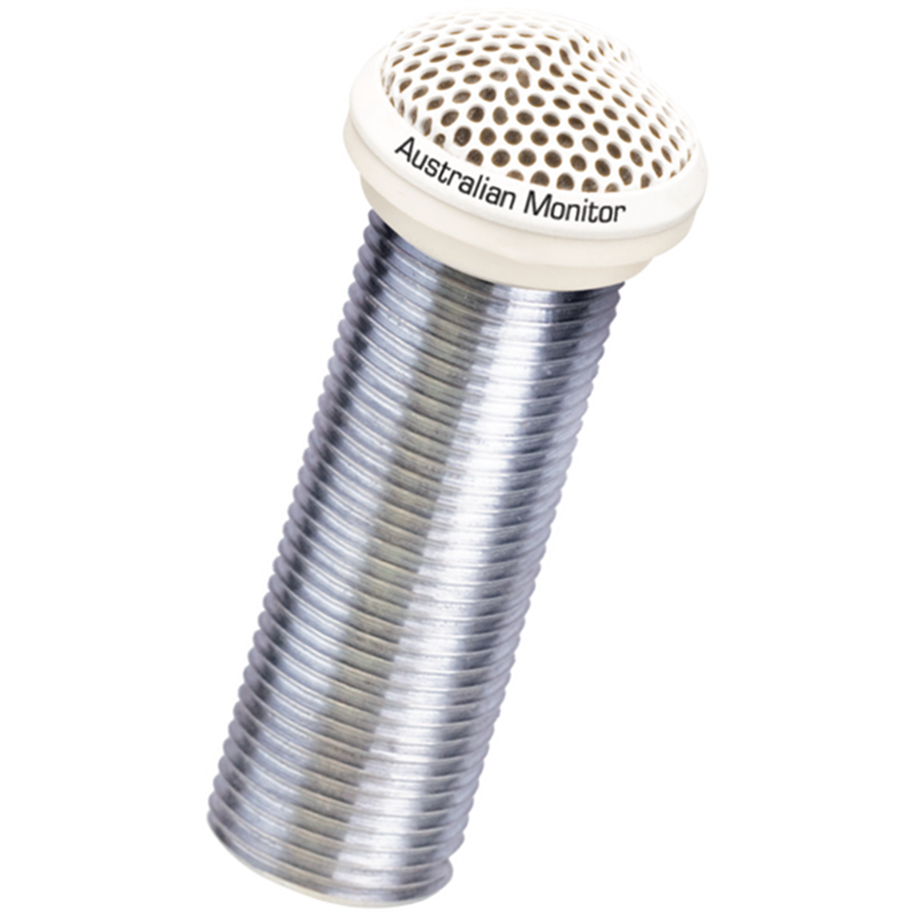 The IMFCW fush mount condenser microphone provides an unobtrusive solution for ambient sound recording and sound reinforcement. This half cardioid condenser microphone is tailored specifically for distance micing. The frequency response has been tuned to reduce plosive and overly sibilant sounds. Each microphone is supplied with rubber isolation rings to keep mechanical noise and rumble to a minimum.