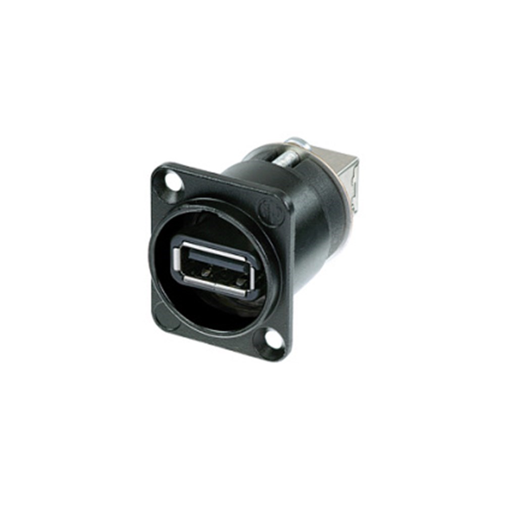 Neutrik's reversible USB gender changer, mounted in the standardized D-shape housing, and the rugged patch cables solve this problem.