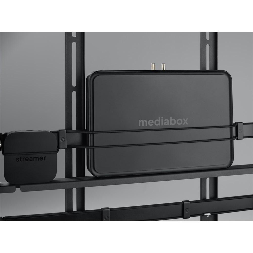 No need for any additional furniture cluttering your home, Falcon smartly integrates storage space into its modern design, devices such as Set Top Box, Apple TV and other media players can be fixed and hidden in the back.