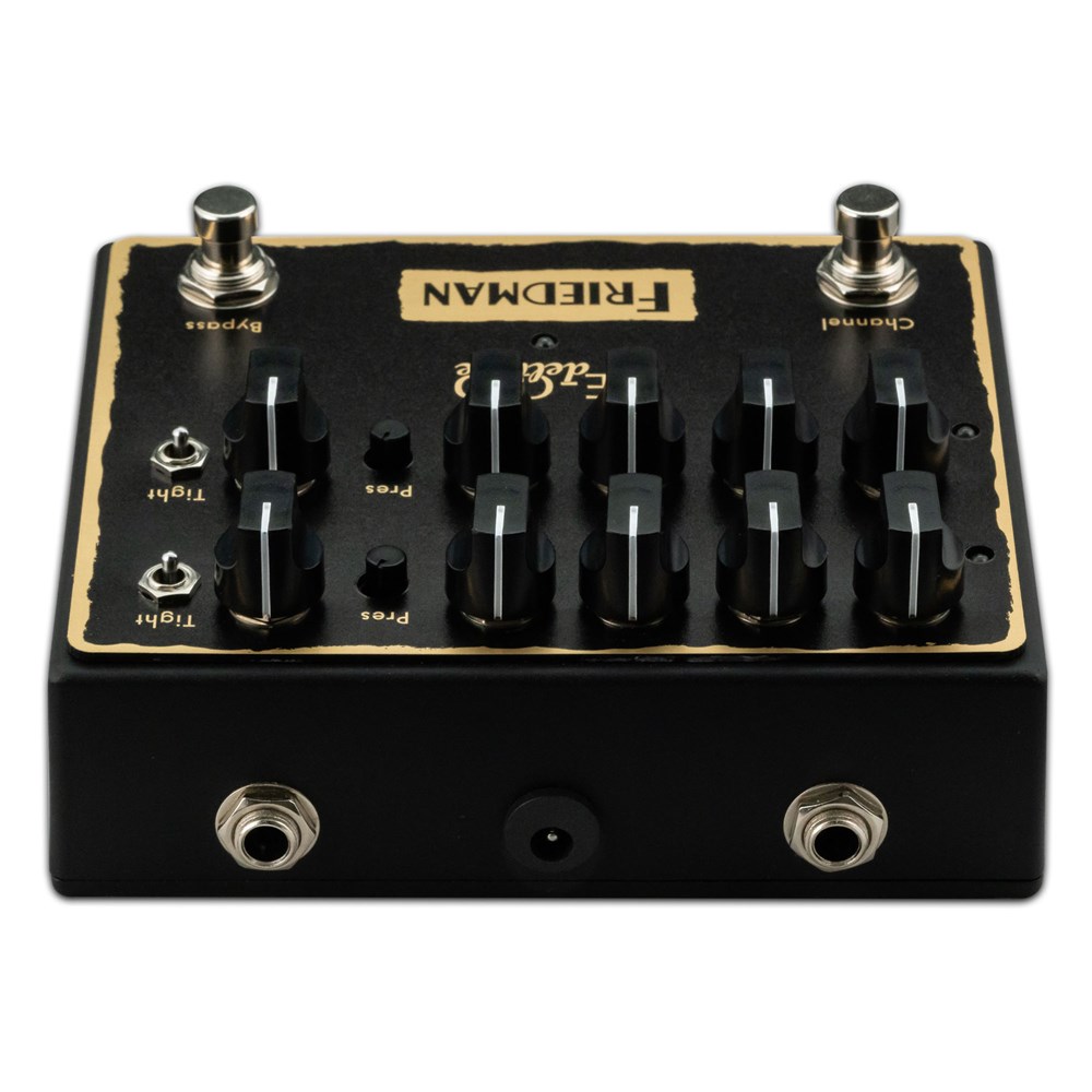 This "BE" dual overdrive pedal captures the tone of the now legendary Friedman BE-100 amplifier, which has graced the stages of world class musicians the world over.  The original Friedman BE-OD single channel pedal took the industry by storm. Tens of thousands of pedals sold worldwide and it's still going strong!  This new BE-OD Deluxe pedal employs the exact same circuit but adds another channel and dual midrange controls. The top row (Channel 1) is identical to the original BE-OD pedal while Dave voiced the bottom row (Channel 2) with slightly lower gain.  Dual "BE" channels in your arsenal allow you to perfectly set both your rhythm and lead sounds.  The BE-OD Deluxe delivers authentic tube amplifier sound with the controls needed to shape your tone. Controls include: 3 position tight switch, volume, gain, bass, middle, treble and presence knobs.  These responsive controls will take you from mild overdrives to straight up gain nirvana.  Built in the USA and designed to withstand decades of abuse, the BE-OD Deluxe is a must have pedal for any tone enthusiast.
