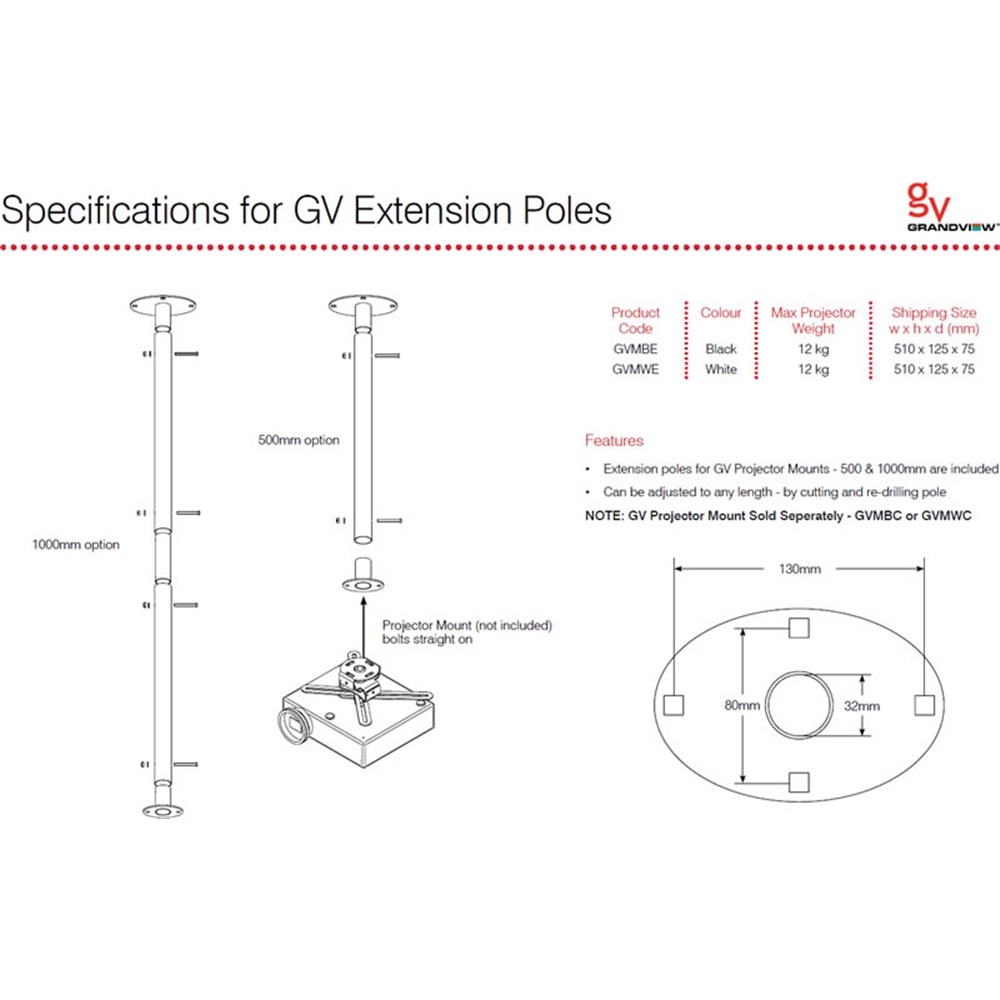 • Extension pole kit gives you a choice of either 500mm or 1000mm pole drop.