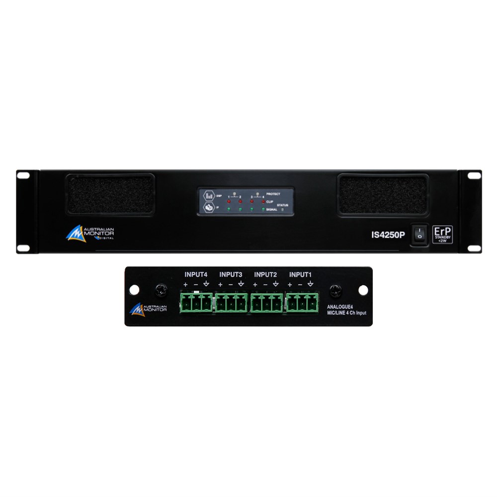 • IS4250P + ANALOGUE4 - 4 inbuilt line level inputs plus expansion slot of 4 line level inputs