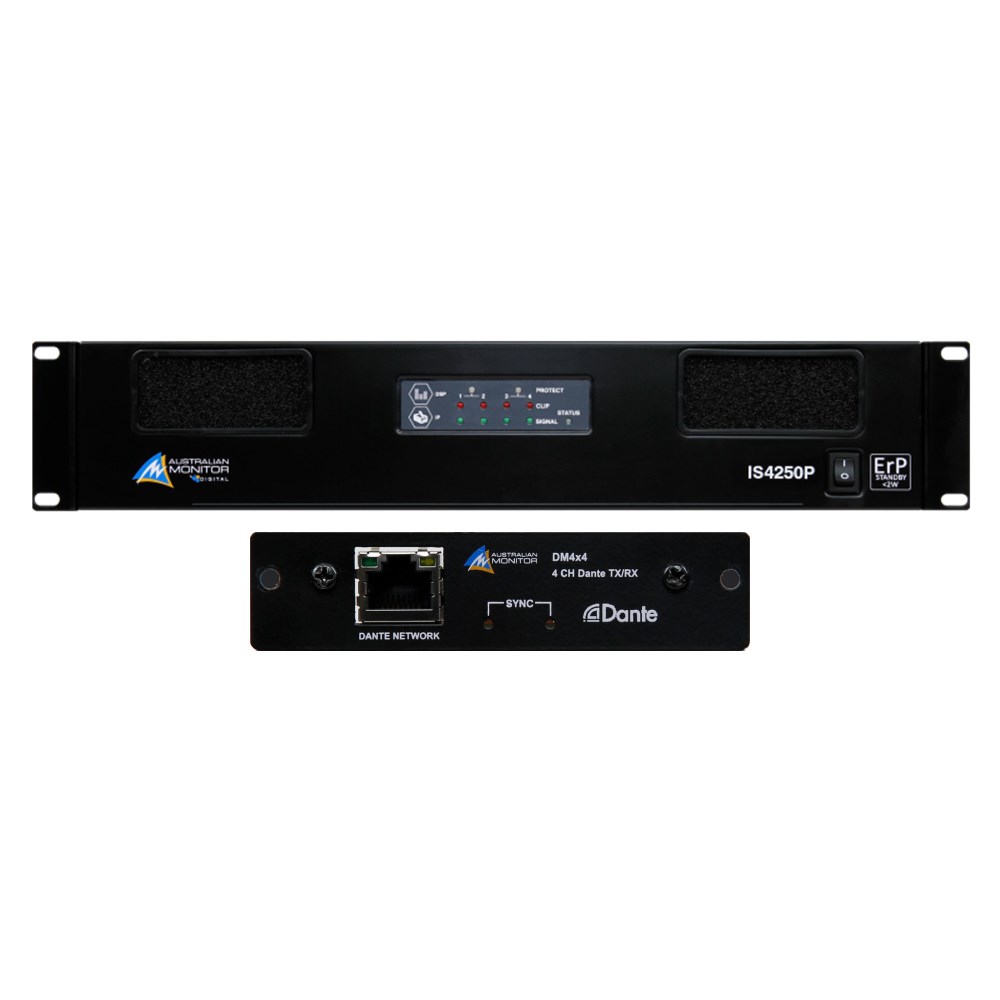 • IS4250P + DM4x4 - 4 inbuilt line level inputs plus expansion slot of 4 Dante Inputs and 4 Dante Outputs