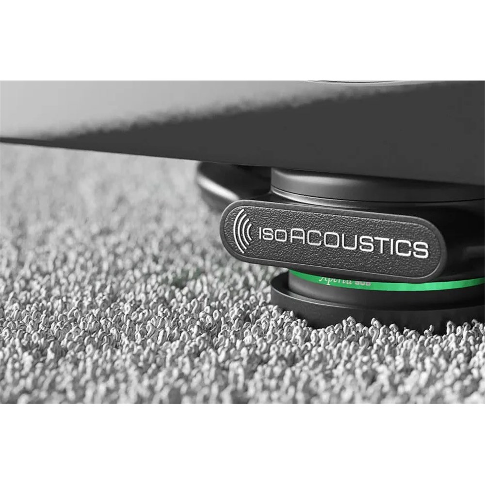 The Aperta Sub provides a high degree of isolation and cleans up the muddy low frequency sound, resulting in tighter bass response and greater clarity. The unique patented isolators are directional and are designed to be positioned with the logo facing forward, to resist lateral deflection and oscillations, for greater accuracy and focus.