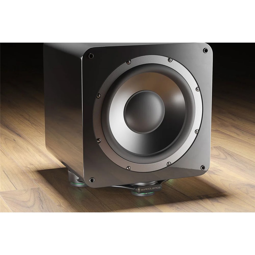 With a sculpted aluminum frame and patented IsoAcoustics integrated isolators, the Aperta Sub introduces a new standard in acoustic isolation for subwoofers. The Aperta Sub decouples the subwoofers from the supporting surface to prevent the physical transfer of energy that excites the supporting surface, causes room rattle and disturbs your neighbors. The patented IsoAcoustics isolation also prevents the subwoofer vibrations from reflecting on the supporting surface and being conducted back up the subwoofer cabinet. Managing these reflections eliminates muddy bass smear and reveals greater clarity and definition.