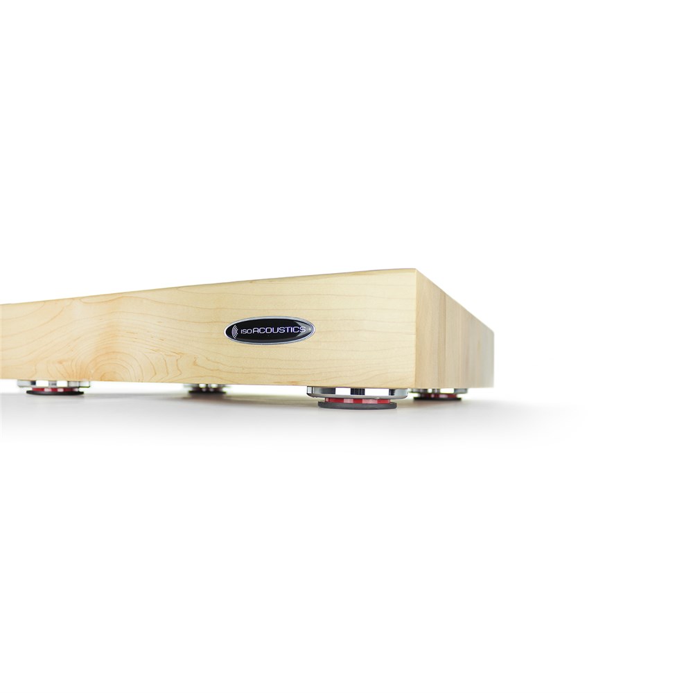 Greater clarity and detailTurntables are carefully made with extreme precision to pick up the finest details in a record. The stylus navigating the tiny variations in the vinyl’s grooves is a delicate process that is very sensitive to vibrations. The DELOS butcher block from IsoAcoustics decouples the turntable from the supporting surface and dramatically diminishes structural vibrations and resonances, resulting in greater clarity and detail.