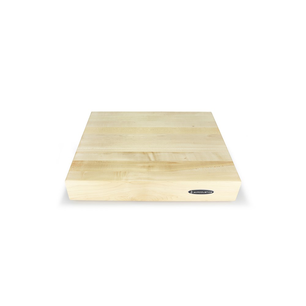 The DELOS 1815M2 Isolated Maple Butcher Block from IsoAcoustics combines the mass of a thick butcher block with IsoAcoustics award winning isolation to provide a low noise floor by eliminating the effects of structure borne vibrations. The DELOS 1815M2 is 18” (455mm) Wide x 15” (380mm) Depth x 3” (76mm) Thick and has a weight capacity of 55 lbs. (24.9 kg). This 3” (76mm) model has an edge in performance over the 1 ¾” (45mm) thick model because of the additional mass. Also available in Walnut (Model 1815W2).