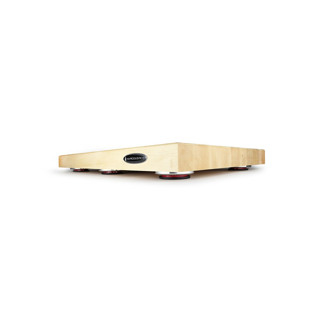 Greater clarity and detailTurntables are carefully made with extreme precision to pick up the finest details in a record. The stylus navigating the tiny variations in the vinyl’s grooves is a delicate process that is very sensitive to vibrations. The DELOS butcher block from IsoAcoustics decouples the turntable from the supporting surface and dramatically diminishes structural vibrations and resonances, resulting in greater clarity and detail.