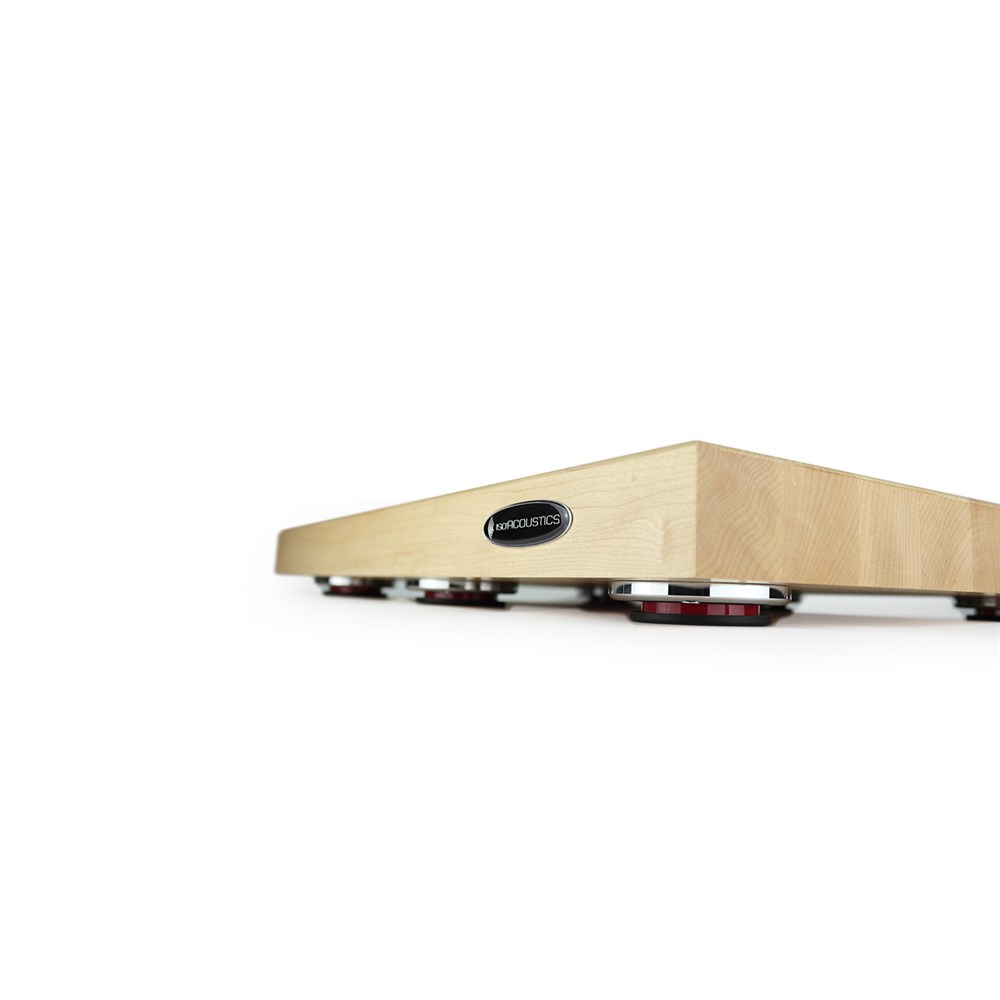 The DELOS 2216M1 Isolated Maple Butcher Block from IsoAcoustics combines the mass of a thick butcher block with IsoAcoustics award winning isolation to provide a low noise floor by eliminating the effects of structure borne vibrations. The DELOS 2216M1 is 22” (560mm) Wide x 16” (405mm) Depth x 1.75” (45mm)Thick and has a weight capacity of 100 lbs. (45.4 kg). This model is also available in Walnut (Model 2216W1).