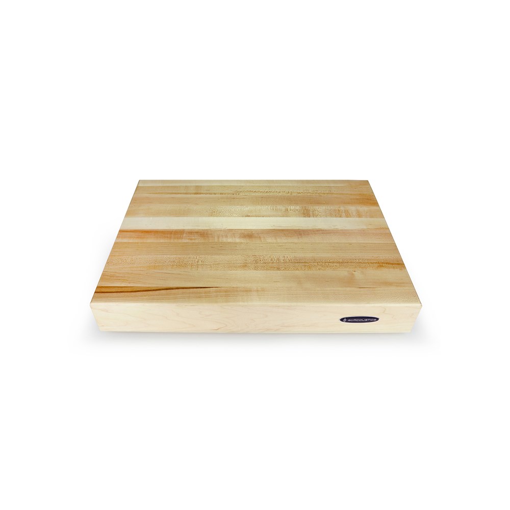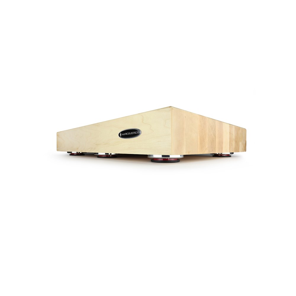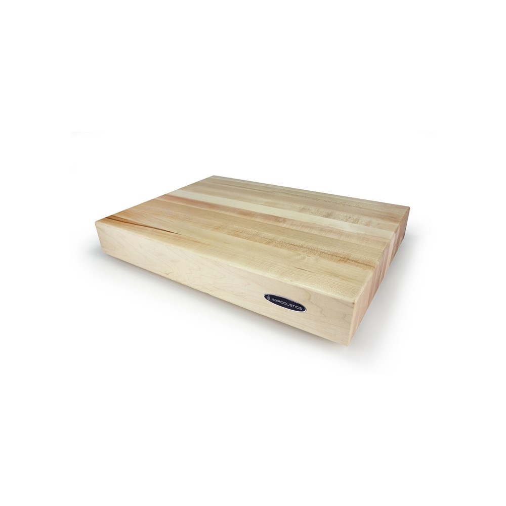 The DELOS 2216M2 Isolated Maple Butcher Block from IsoAcoustics combines the mass of a thick butcher block with IsoAcoustics award winning isolation to provide a low noise floor by eliminating the effects of structure borne vibrations. The DELOS 2216M2 is 22” (560mm) Wide x 16” (405mm) Depth x 3” (76mm) Thick and has a weight capacity of 90 lbs (40.8 kg). This 3” (76mm) model has an edge in performance over the 1 ¾” (45mm) thick model because of the additional mass. This model is also available in Walnut (Model 2216W2).