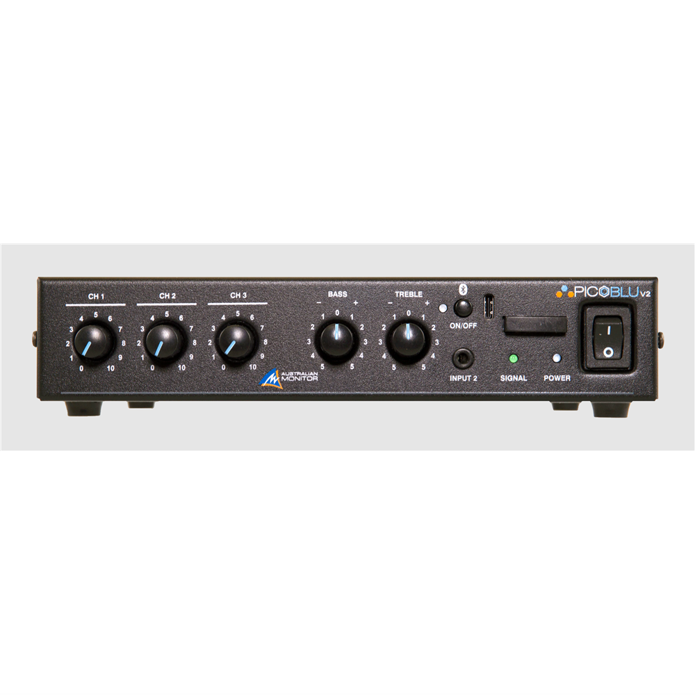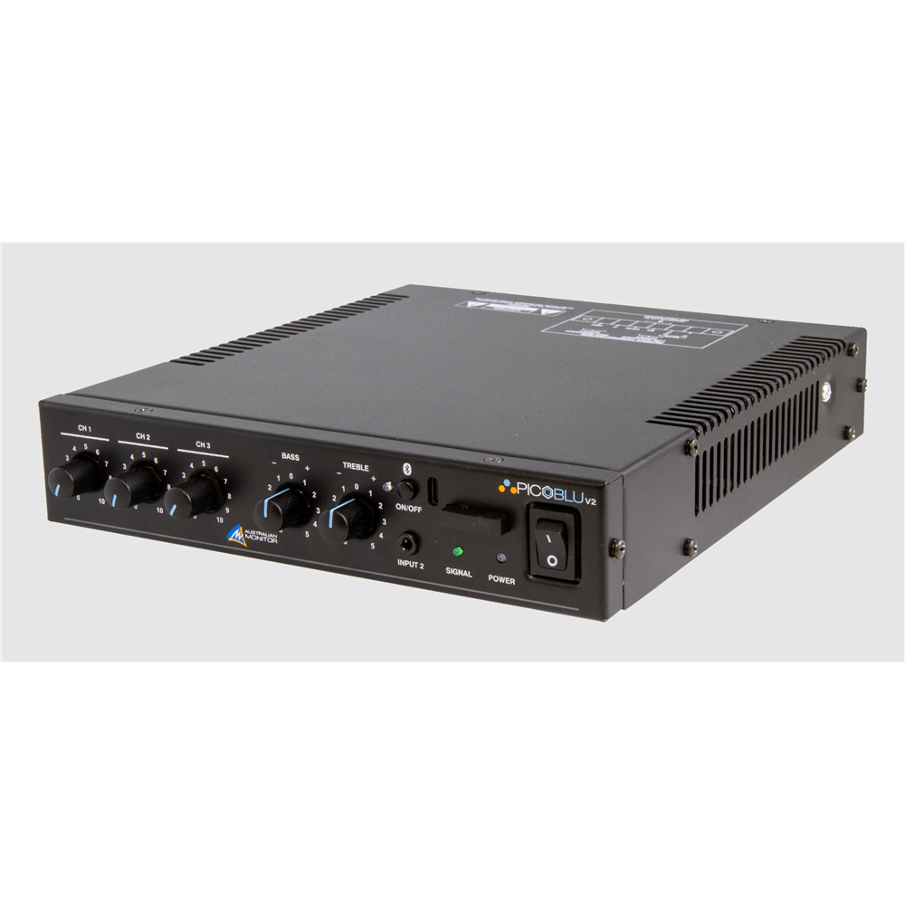 The Australian Monitor PICOBLU®v2 is our second generation small form factor 30W Mixer Amplifier specifically designed for small space applications such as cafes, restaurants, small retail and classrooms.