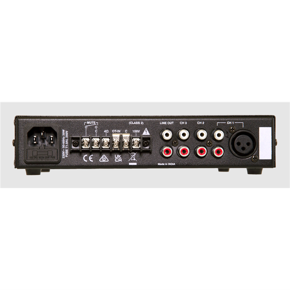 The system still maintains 3 input channels, including microphone, Bluetooth® and 3.5mm input jack options and an integrated 30W power amplifier with 4Ω and 100V output modes.