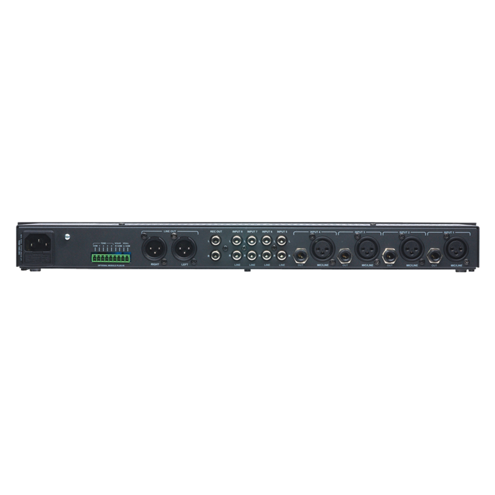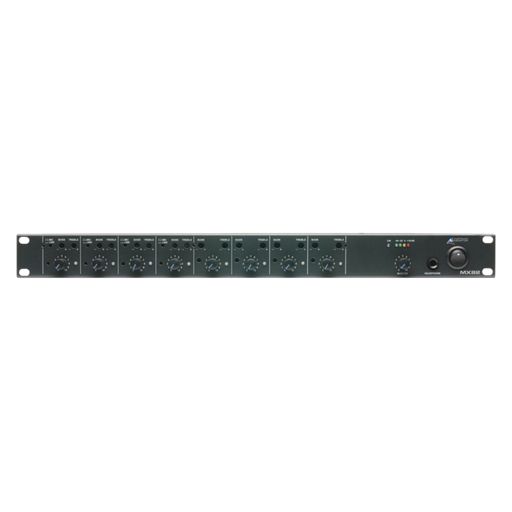 The MX82 is a 1RU stereo mixer that features four mic/line inputs and four stereo inputs.