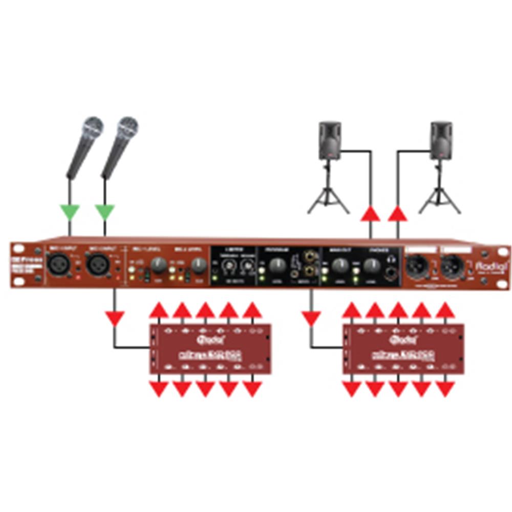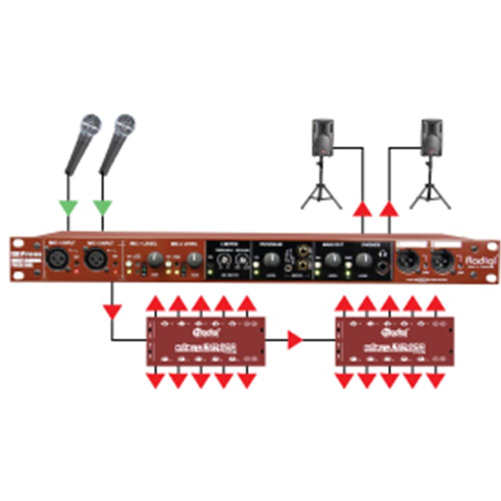 The Radial mPress is a modular press box that can be expanded as needed to feed a community-sized press gallery or distribute audio for an international event.