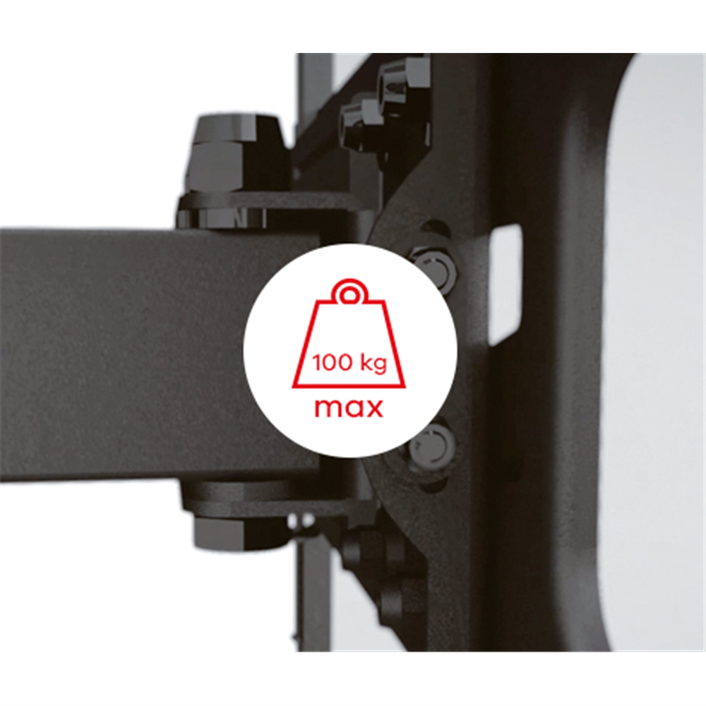Robust design for optimal supportThe SOLID line of wall mounts features a robust design that ensures optimal support of your valuable TV at all times. Cast from high-grade material, this sturdy wall mount will hold any TV weighting up to 100 kg.