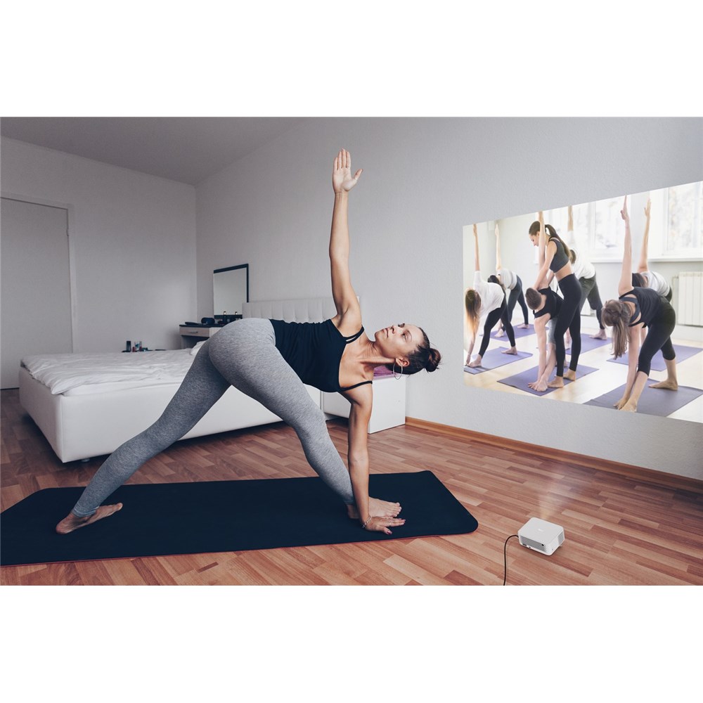 Innovative Time-of-Flight (ToF) technology delivers automatic geometric and focus correction to create a perfectly projected image within an instant. Plus, four-corner correction provides instant place-and-play. Home users can take advantage of the convenient USB-C power input port, enabling them to use PD 3.0 portable charging batteries,¹ to enjoy video content on-the-go for outdoor movies, camping, holidays, and more.