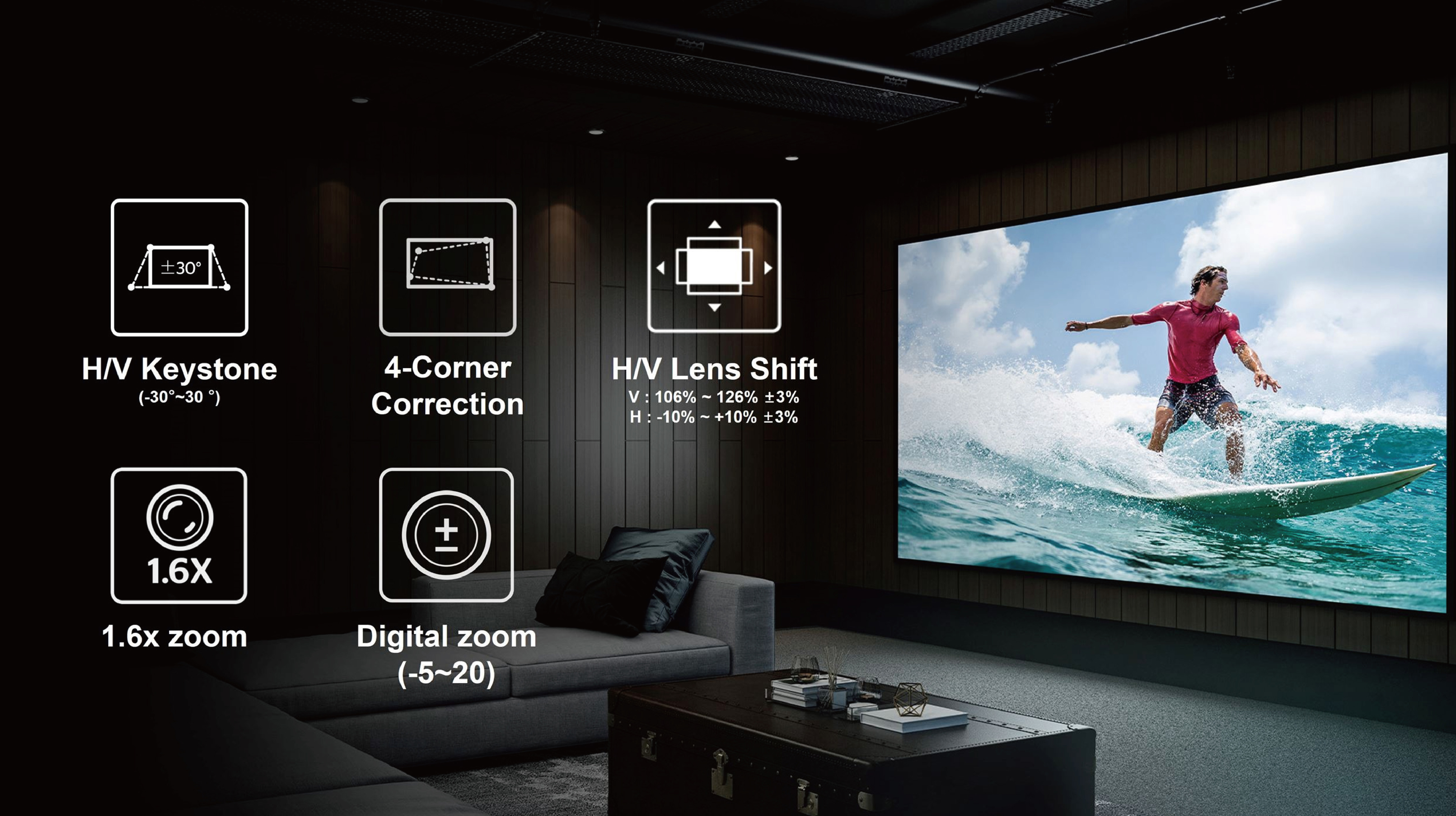 Designed for flexibility, 5000 lumens of brightness ensures vivid image quality in any room, while easy installation features like lens shift, 360-degree projection, keystone and 4 corner correction mean you can create a true home cinema experience, wherever you choose to watch.