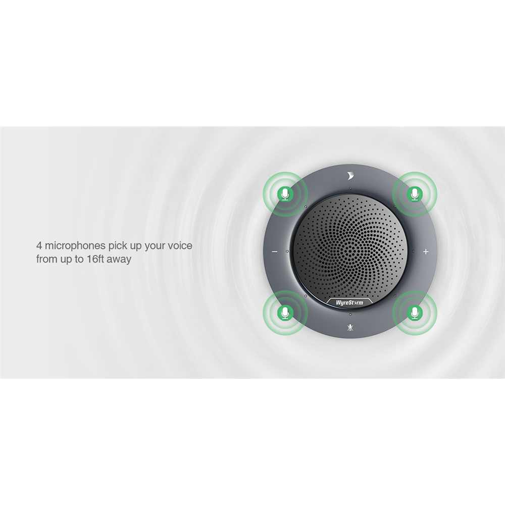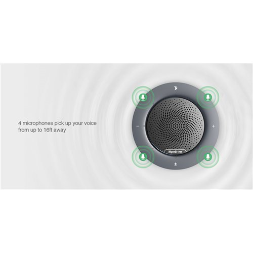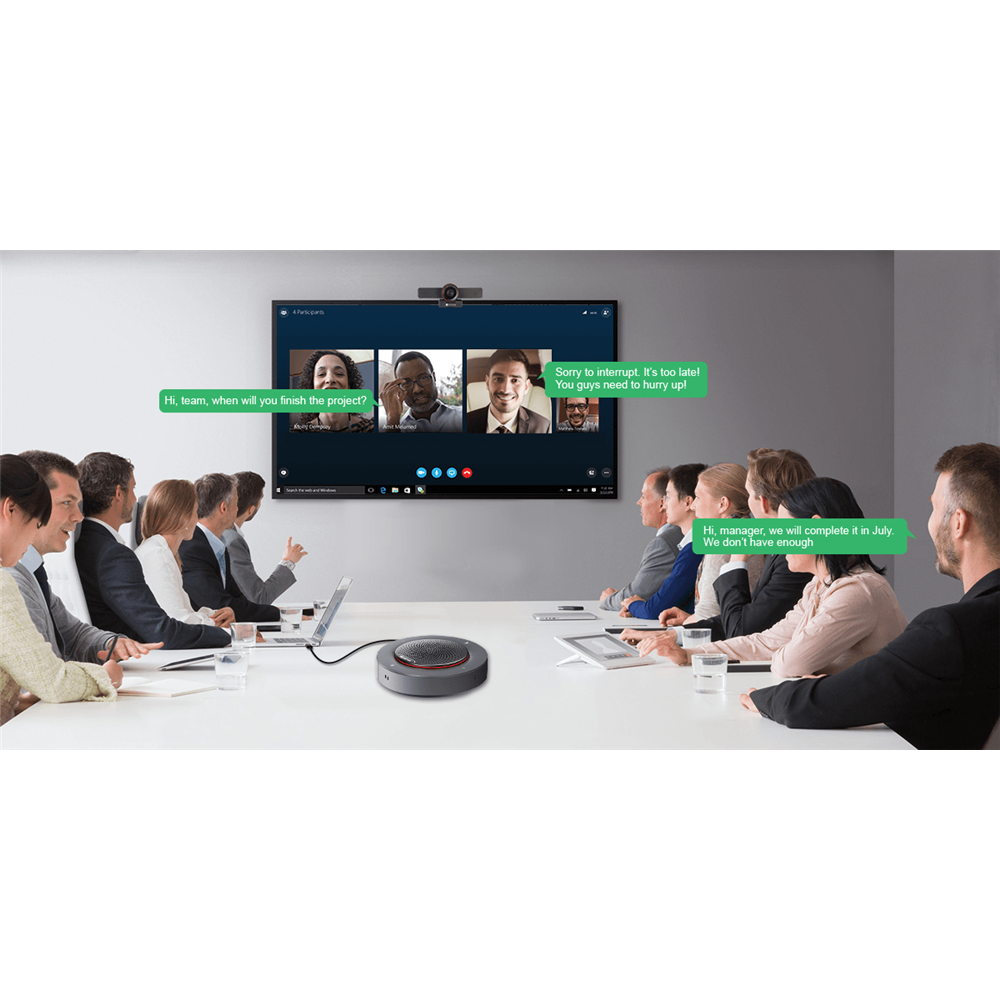 With 4 built-in mics arranged in a 360° array, HALO 30 speakerphone can pick up clear and natural voice omni-directionally within a distance of 16ft/5m. It is ideal for both home office and meeting room of 2 to 4 people. Stand up, walk around, and be confident knowing that HALO 30 covers your entire meeting space.