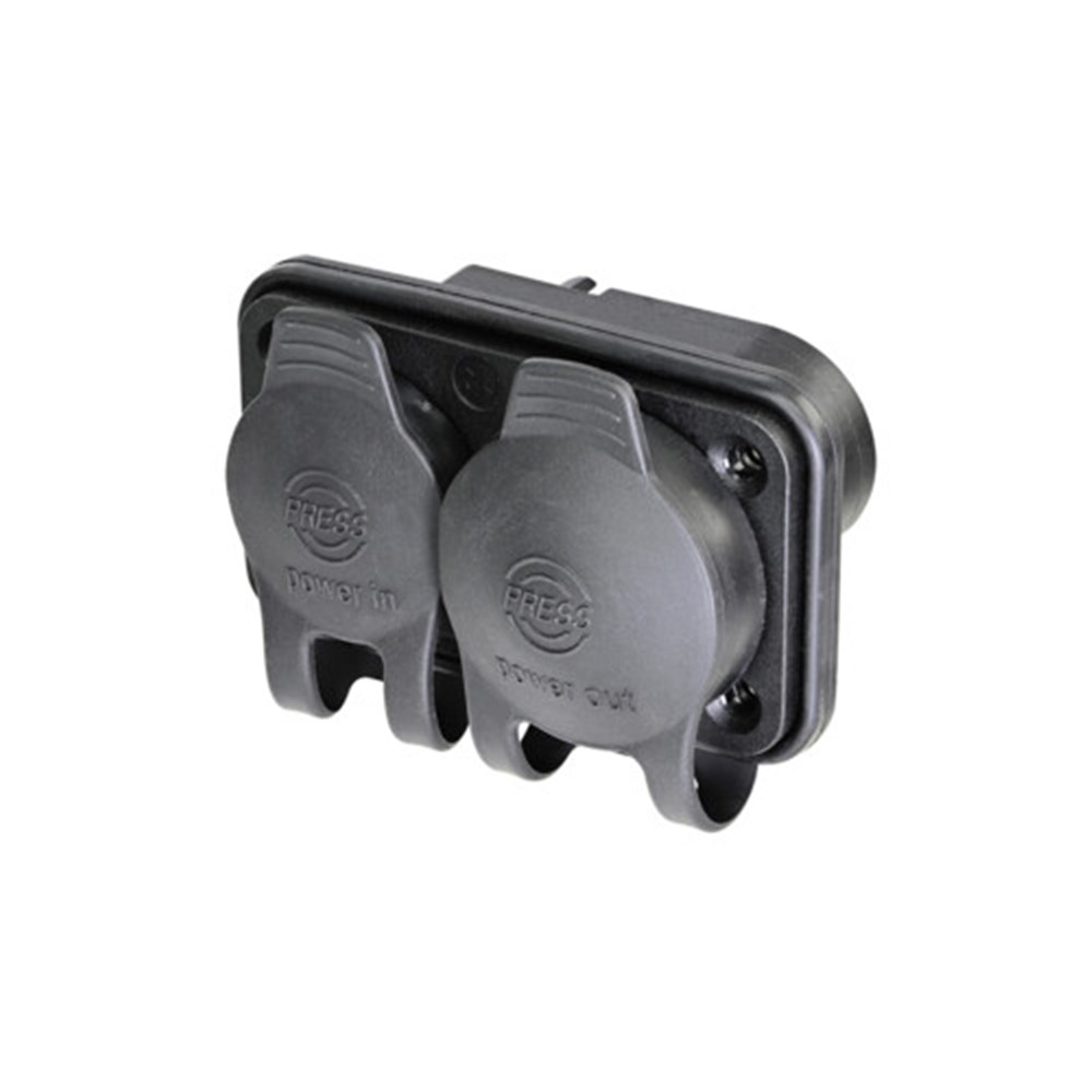 The rubber sealing cover SCNAC-04 with double caps (power-in / power-out) protects the powerCON TRUE1 TOP chassis connectors NAC3PX-TOP from dust and water according to protection class IP 65. User friendly and easy to assemble, its compact frame allows for high packing density.