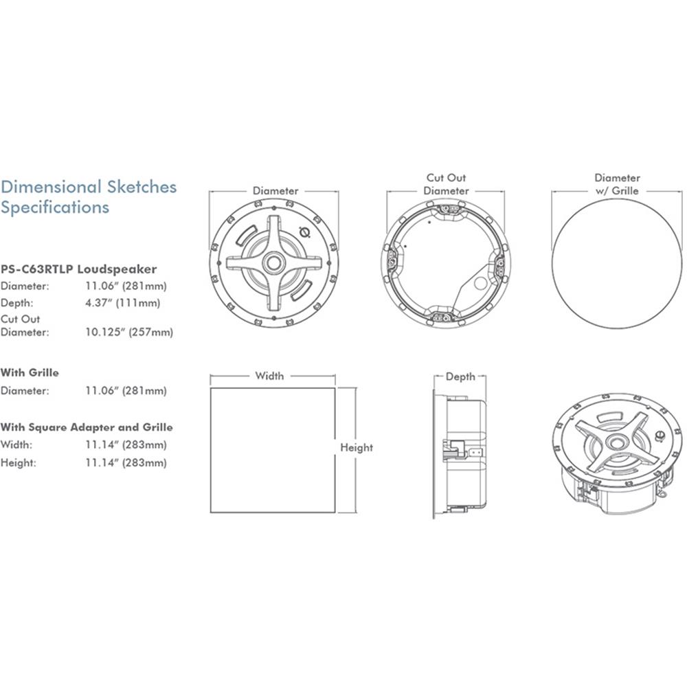 6.5" Low Profile In-Ceiling SpeakerSonance Professional Series PS-C63RTLP is a 70V/100V/8 Ohm selectable In-Ceiling Speaker that features a shallow 4.37” (111mm) construction for installations in restricted spaces such as beneath HVAC ducting. It also features a one-piece bezel-less grille that is magnetically secured and allows for a one-step painting process to simplify installation and minimize visual distraction.