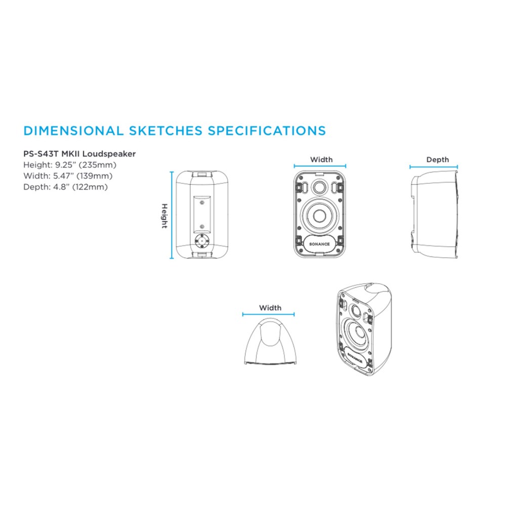 Sonance Professional Series PS-S43T MKII Surface-Mount Loudspeakers feature the Patented FastMount bracket and front cable connection to speed up the installation process and provide a clean appearance.