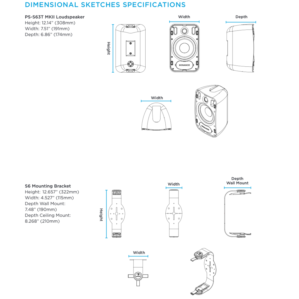 Sonance Professional Series PS-S63T MKII Surface-Mount Loudspeakers feature the Patented FastMount bracket and front cable connection to speed up the installation process and provide a clean appearance.