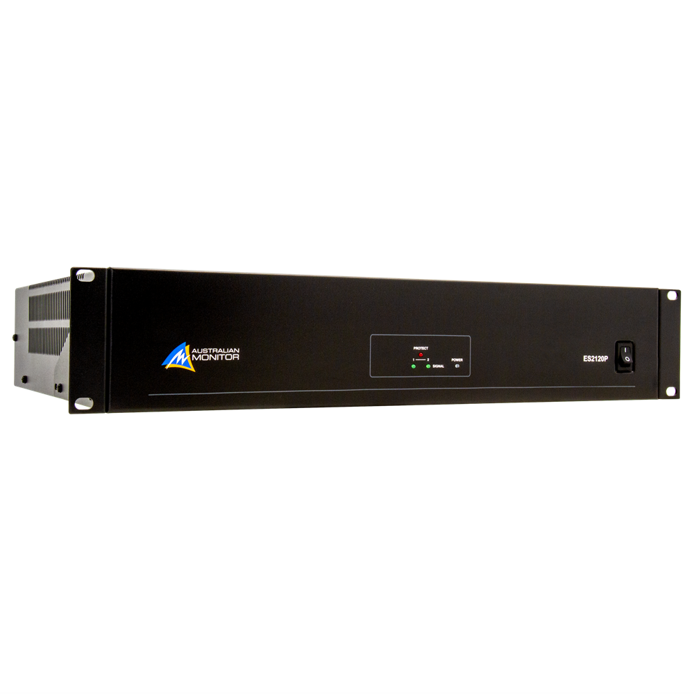 The ES2120P power amplifier delivers 120 watts per channel at 100 volt or 4 ohm in a 2 RU package.