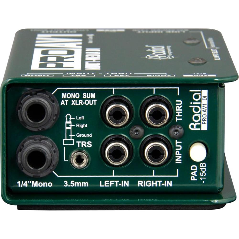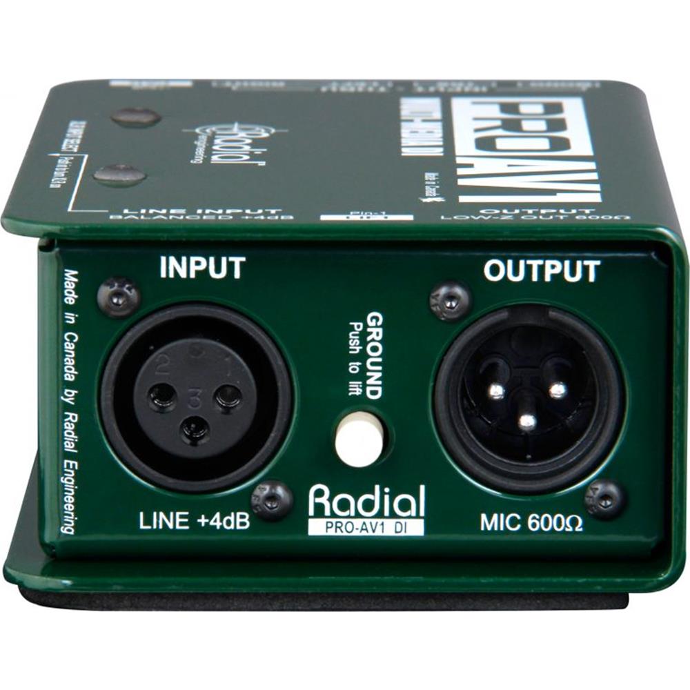 The ProAV1 works just like standard direct boxes for passive and active musical instruments like guitars, basses, and keyboards. You can thru-put the signal to an on-stage amp while transformer isolation keeps things quiet.